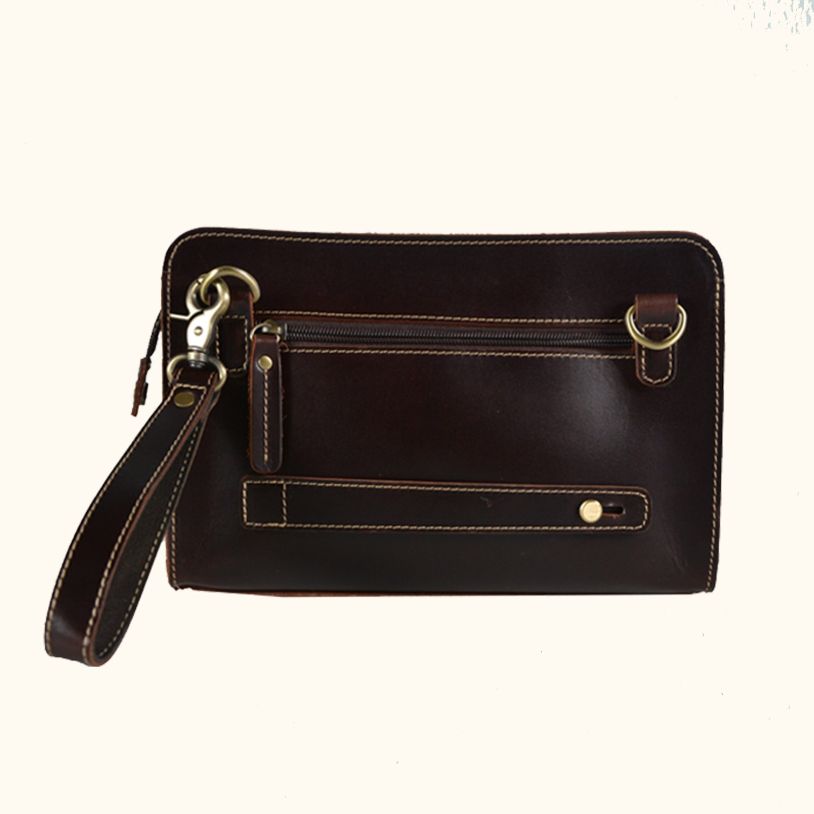 Crafted from natural-grain leather, this versatile wristlet/sling bag combines refined texture with practical design. The main compartment features two small zipper slots to keep your essentials neatly organized, while a magnetic front compartment and back zipper pocket offer quick and secure access. Designed for flexibility, it comes with a detachable wrist strap, a back clutch handle, and a long detachable leather shoulder strap, allowing you to carry it with ease in multiple ways to suit any occasion.