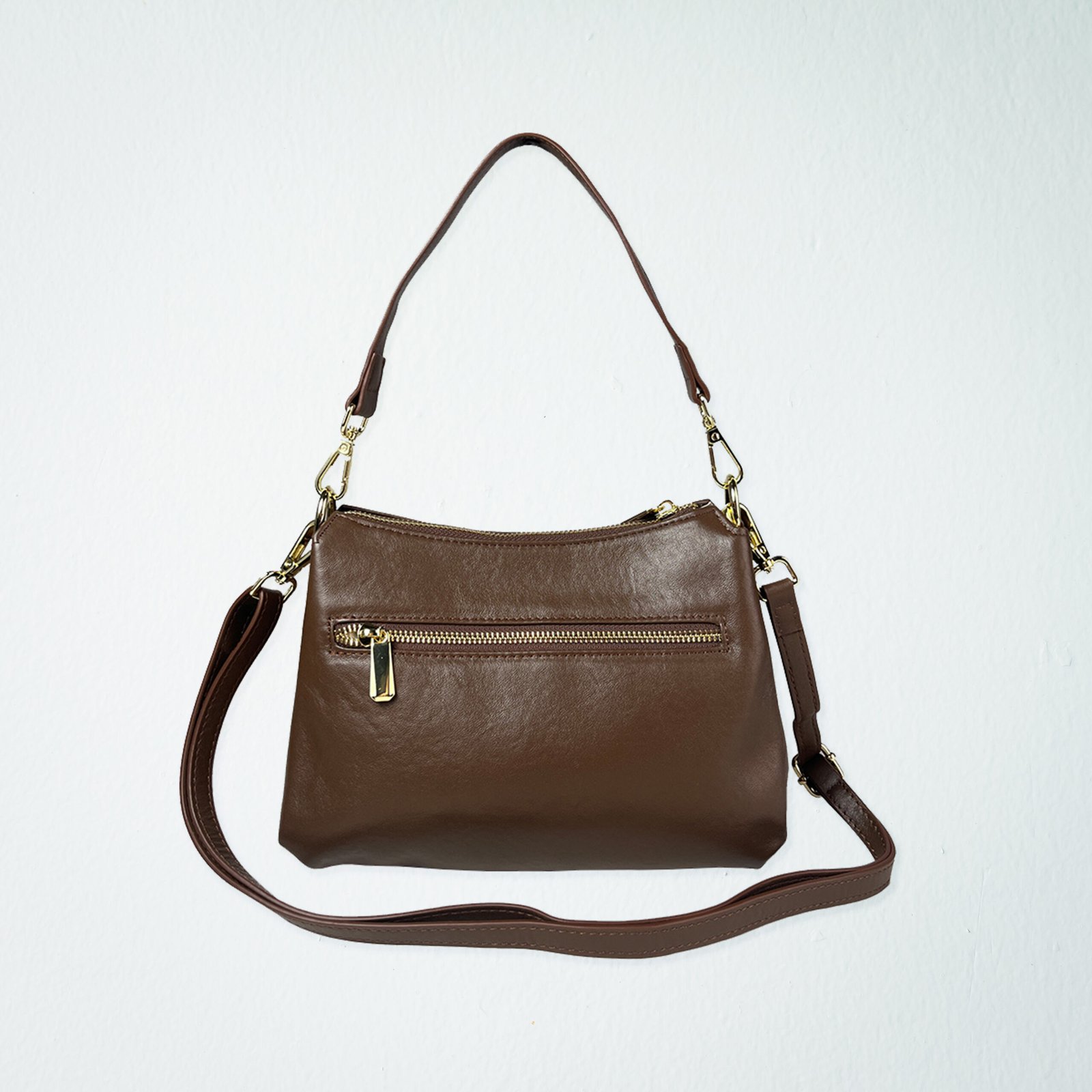 Designed for the woman who values effortless elegance and adaptability, this convertible bag is crafted from full‑grain cow leather—a premium material that offers exceptional durability and develops a beautiful patina with everyday use. The thoughtful convertible design allows you to seamlessly transition between styles: carry it by the shorter shoulder strap measuring 24cm for a polished handbag or shoulder silhouette, or attach the long detachable and adjustable strap measuring 67cm to wear it as a crossbody for hands‑free convenience. The main zipper compartment is perfectly sized to comfortably fit an iPhone 16 Pro Max, keeping your device secure yet easily accessible. Inside, an internal divider paired with zipper compartments provides thoughtful organization, allowing you to separate smaller essentials like cards, cosmetics, or keys without clutter. Whether you are heading to the office, meeting friends for brunch, or traveling for the weekend, this full‑grain leather convertible bag delivers timeless sophistication with the practical versatility to suit any occasion.
