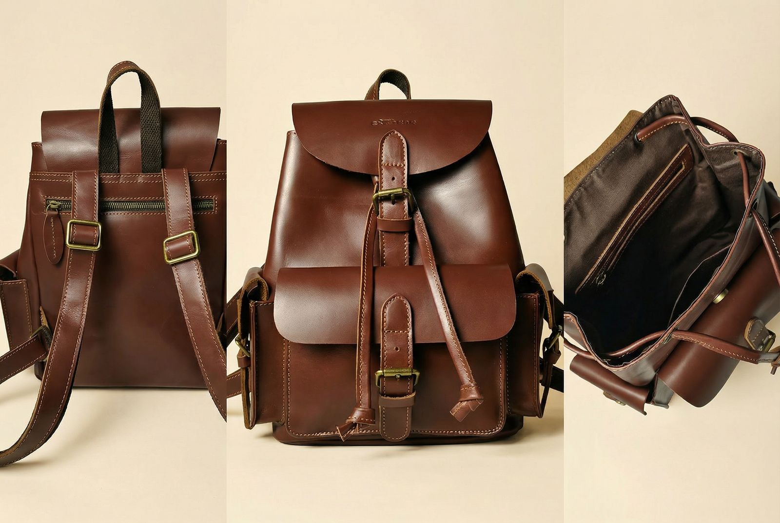 Crafted from premium full-grain leather, this travel backpack combines durability with timeless appeal, developing a rich character over time. Designed for practicality and style, it features a spacious main compartment secured with a drawstring and button closure, offering both flexibility and added protection for your belongings.